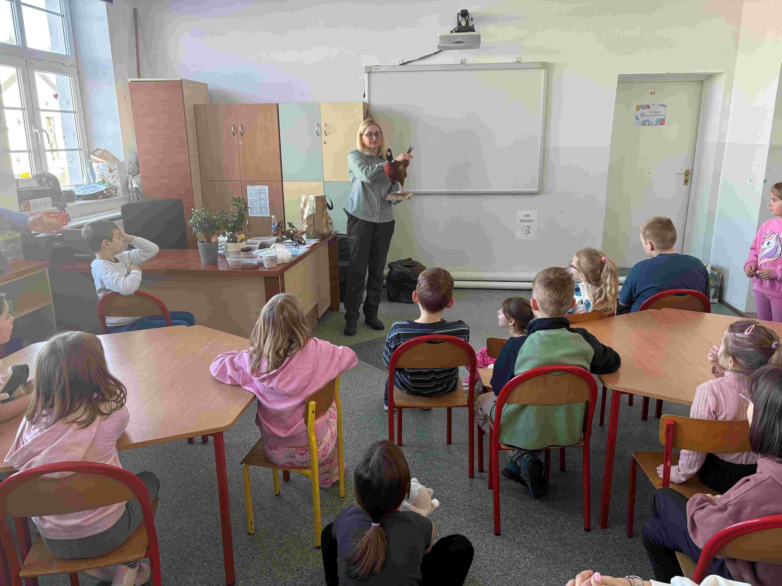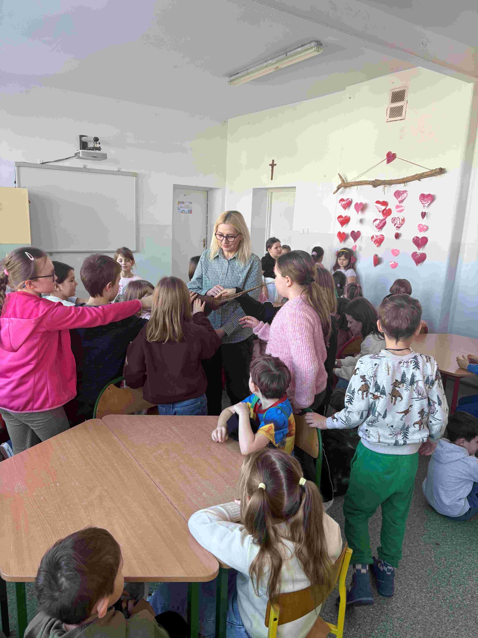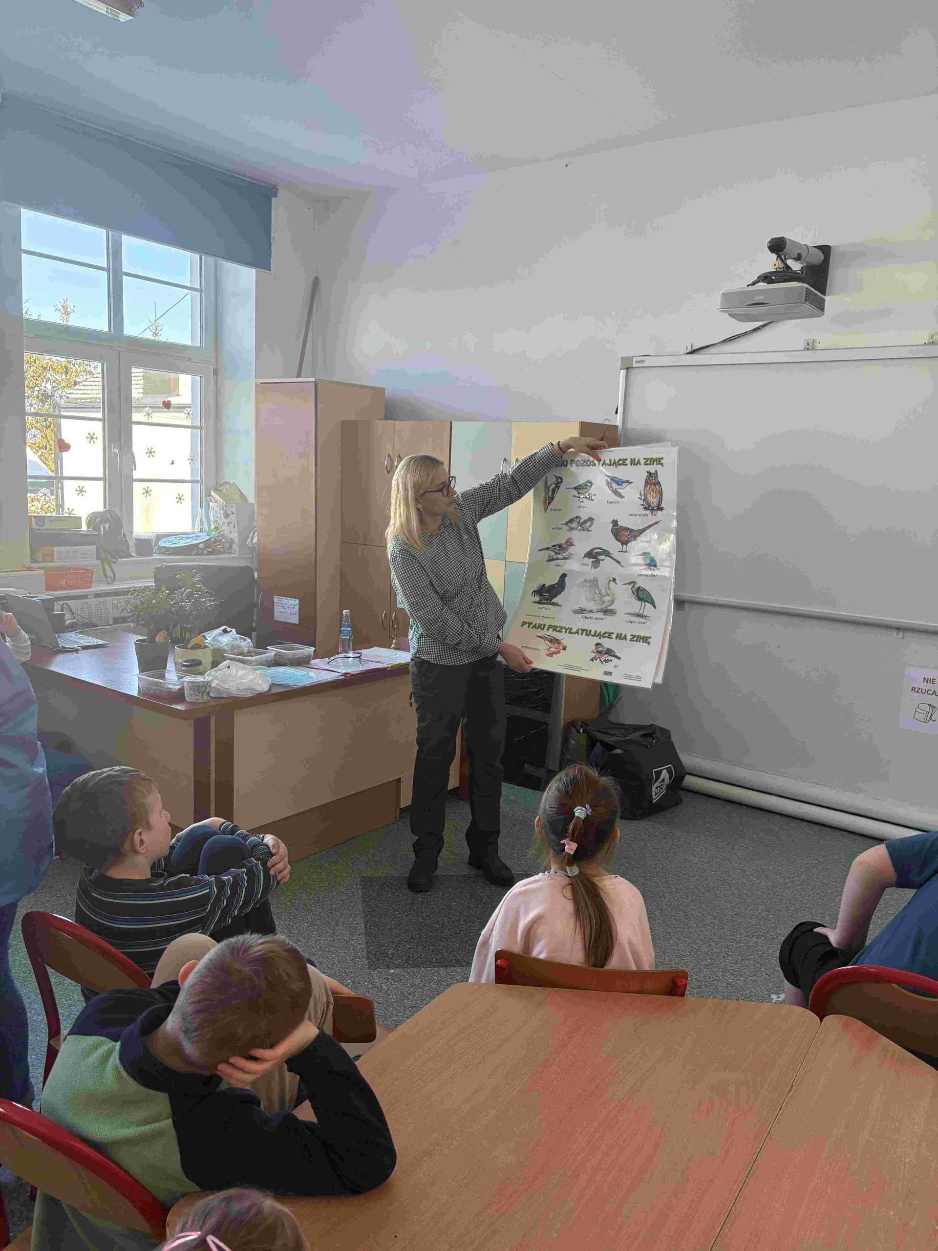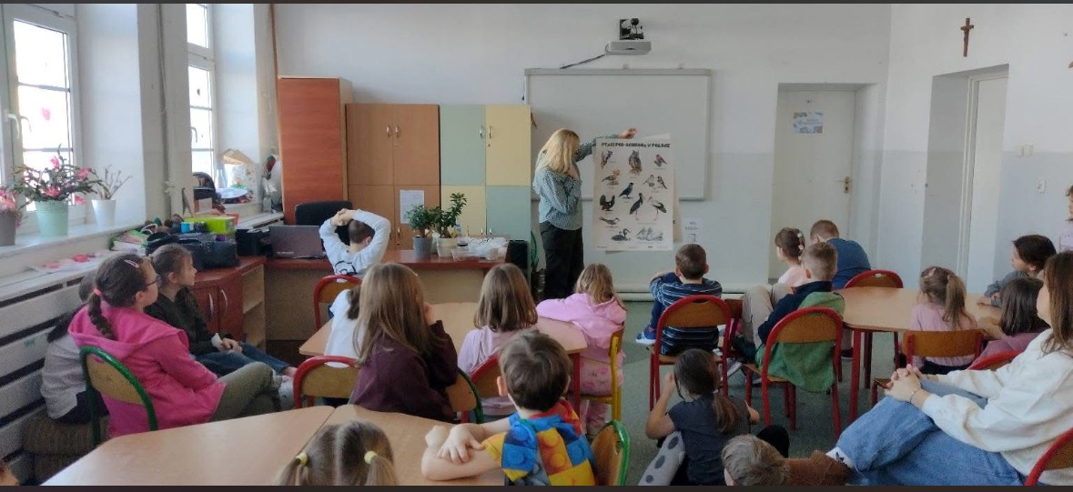 W dniu 16.02.2026r. w Szkole Podstawowej im. Jana Pawła II w Łęganach, gościliśmy Panią Anetę Blunck z Koła Łowieckiego ” Żubr” w Olsztynie. Pani Aneta przygotowała zajęcia na temat dokarmiania ptaków w okresie zimowym. Uczniowie klas I-III mogli obejrzeć pokarm, jaki powinien się znaleźć w ptasiej stołówce, m.in. słonecznik, nasiona zbóż, kukurydza, orzechy, niesolona słonina, rzepak, suszone owoce. Zaprezentowała ptaki zimujące. Jak powinien wyglądać karmnik. Uczniowie uczestniczyli w quizie. Zajęcia miały na celu uwrażliwienie uczniów na los zwierząt w okresie zimy. Nauka rozpoznawania ptaków oraz zasad ich dokarmiania. Na koniec uczniowie mogli dotknąć rekwizytów ( sikorka, gile, bażant). Dziękujemy Pani Anecie za dostarczenie nam wielu ciekawych informacji na temat ptaków.