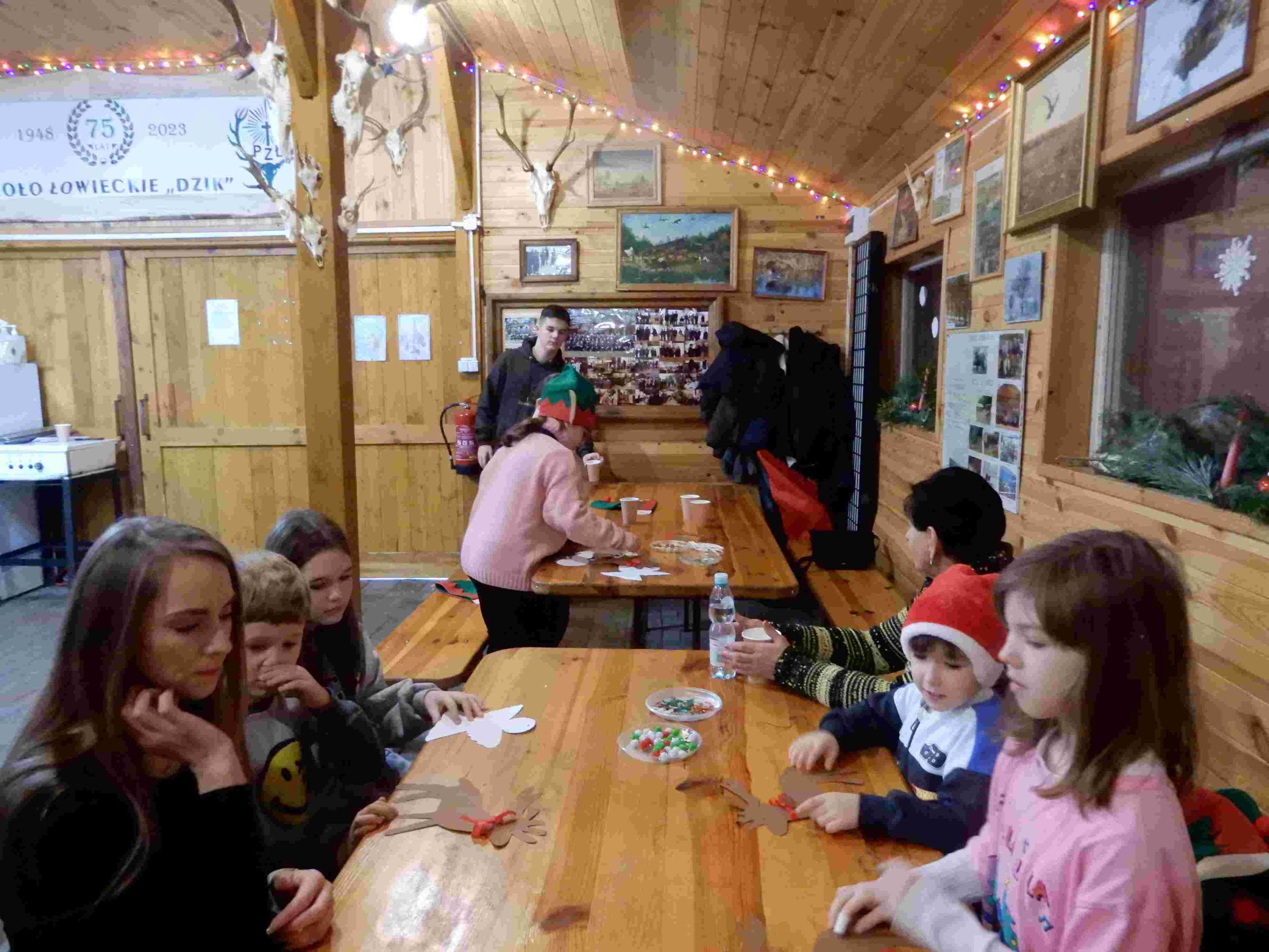 W dniu 13.12.2025 r. w Lubnowych Małych w stanicy Koła Łowieckiego „Dzik” w Suszu po raz kolejny członkowie Komisji Promocji, Tradycji i Kultury Łowieckiej w osobach Kol. Zbigniewa Kołodziejskiego, Kol. Doroty Kisieliczyn oraz Kol. Michała Kaczyńskiego zorganizowali i przeprowadzili spotkanie MIKOŁAJKOWE z dziećmi i wnukami członków koła. Na początek przedstawiono opowieści o Elfie Teofilku, który poznaje historię Bożego Narodzenia i związane z nim tradycje. Następnie dzieci tworzyły różnego rodzaju przepiękne ozdoby świąteczne, które zawisły na okazałej choince. Nie zabrakło niepowtarzalnych stroików bożonarodzeniowych, wykonanych przez dzieci wspólnie ze swoimi rodzicami i dziadkami, które nadały blasku i zdobią stoły stanicy. W trakcie prac dzieci oraz ich opiekunów częstowano piernikami oraz pyszną świąteczną herbatą. Nie obyło się oczywiście bez wspólnego pieczenia kiełbasek, które uczestnicy spotkania zjedli ze smakiem. Gdy choinka nabrała blasku i została udekorowana wykonanymi ozdobami do stanicy przybył Święty Mikołaj w towarzystwie Śnieżynki i Elfa, którzy wręczyli dzieciom słodkie prezenty.