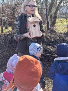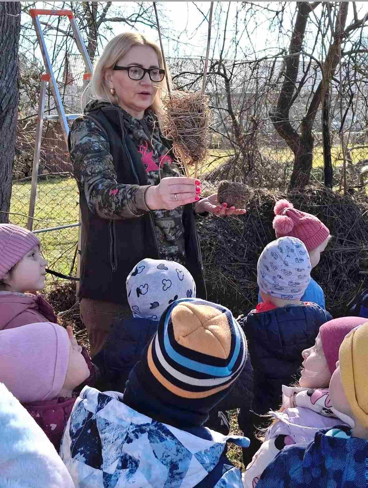 Szczególnym punktem spotkania była wizyta Pani Anety Blunck z Koła Łowieckiego Żubr w Olsztynie. Dzięki jej zaangażowaniu dzieci miały okazję poszerzyć swoją wiedzę na temat ptaków – zwłaszcza procesu ich wylęgania oraz znaczenia przedwiośnia jako najlepszego czasu na montowanie budek lęgowych.