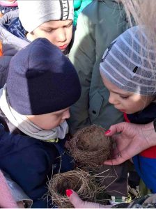 Przedszkolaki mogły nie tylko wysłuchać ciekawych opowieści, ale także zobaczyć i dotknąć prawdziwych ptasich gniazd. Były to między innymi gniazdo trzciniaka, jaskółki oraz innych mniejszych ptaków. Gniazda były odnalezione i przyniesione przez gościa.