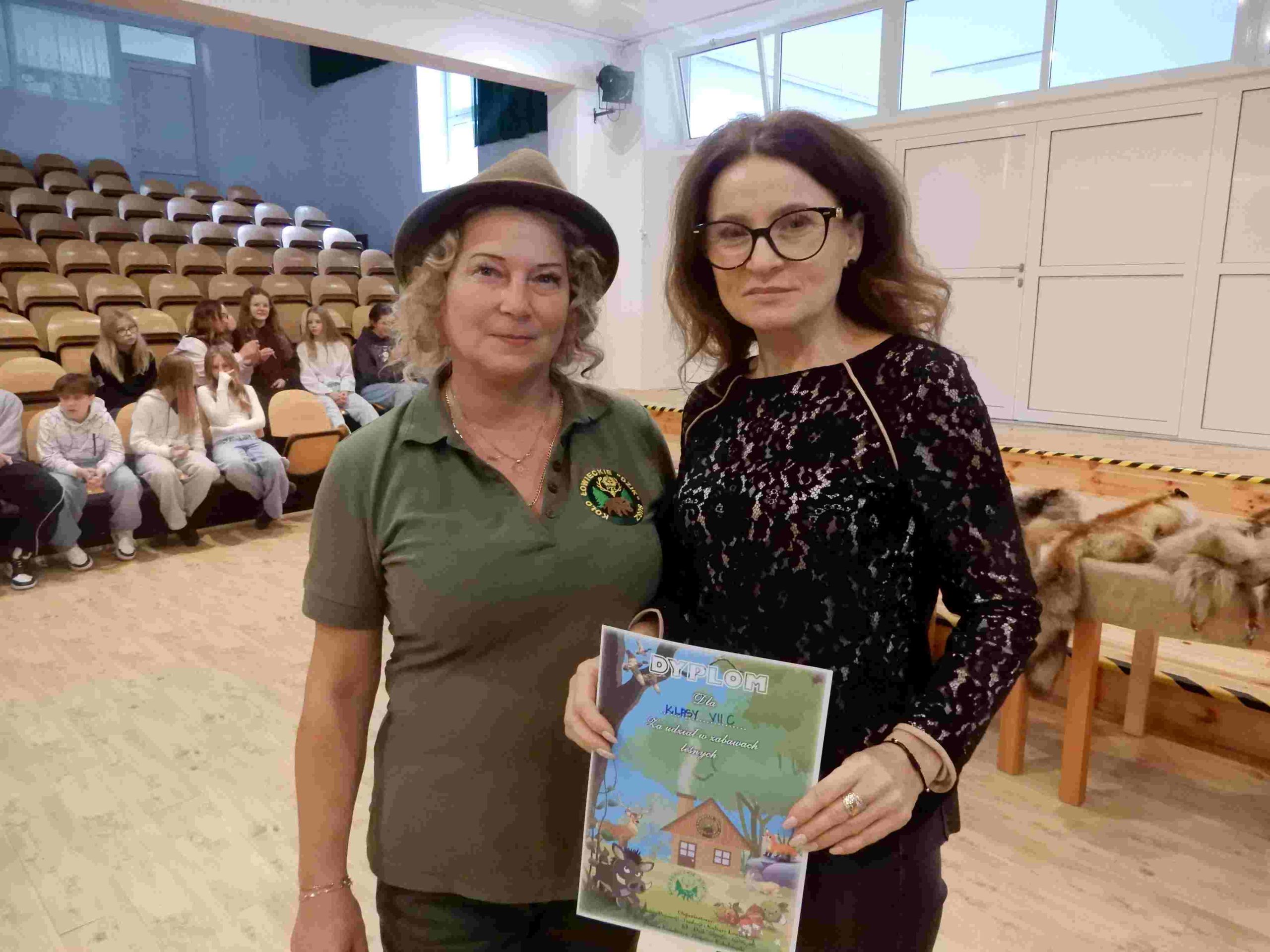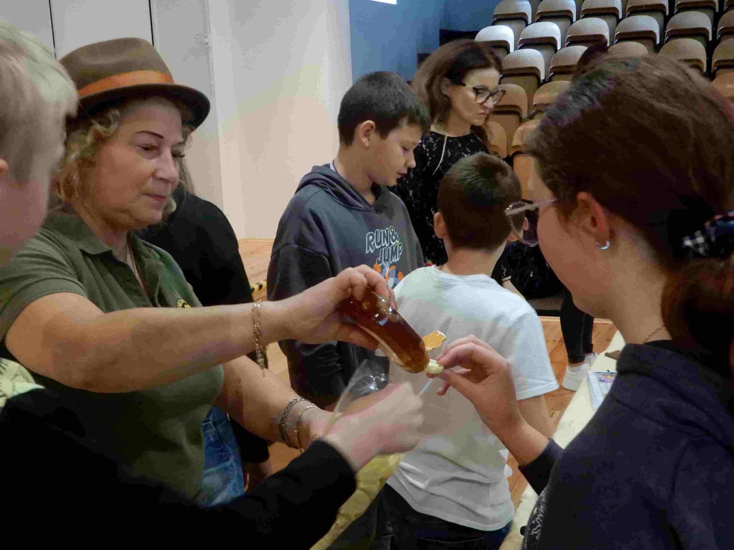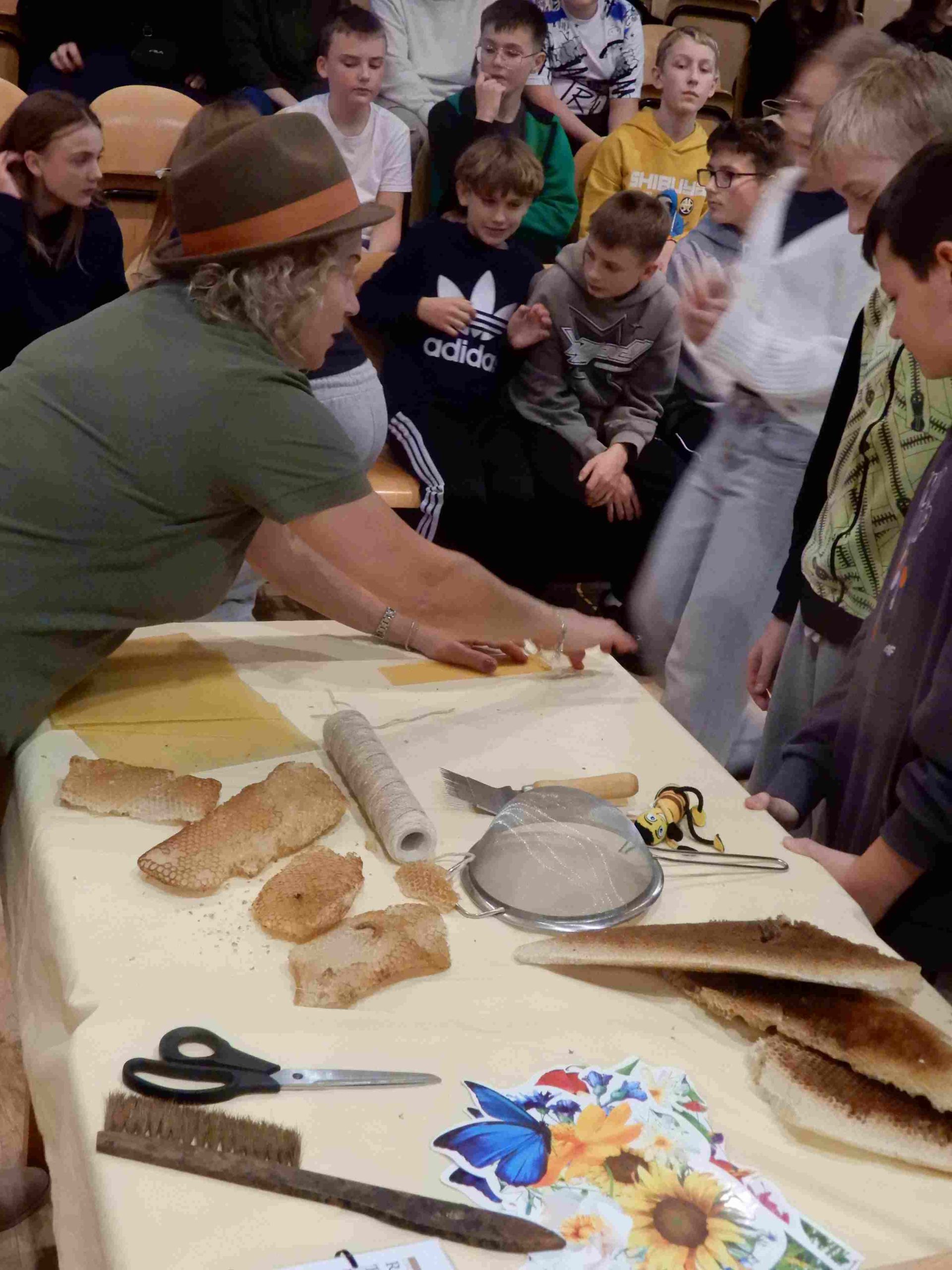 W dniu 03.11.2025 r. na zaproszenie dyrekcji Szkoły Podstawowej nr 5 w Iławie im. Polskich Noblistów członkowie Komisji Promocji, Tradycji i Kultury Łowieckiej Koła Łowieckiego „Dzik” w Suszu w osobach kol. Zbigniew Kołodziejskiego, kol. Doroty Kisieliczyn oraz kol. Michała Kaczyńskiego przeprowadzili zajęcia o tematyce łowiecko – pszczelarskiej. W spotkaniu wzięła udział kl. VI a – wych. Pani Ewa Tyszkiewicz oraz kl. VII c – wych. Pani Edyta Wojnowska. Część dotyczącą szeroko pojętego łowiectwa przeprowadził kol. Zbigniew Kołodziejski. Podczas prezentacji omówiono podstawy prawne na jakich działa PZŁ, czym zajmuje się łowiectwo /nie tylko polowanie/, kultura, tradycja i obyczaje m.in. legenda św. Huberta, ślubowanie i pasowanie na myśliwego, sygnalistyka łowiecka, gwara łowiecka, zaprezentowano rodzaje urządzeń łowieckich oraz fotografie z działalności komisji. Druga prezentacja dotyczyła wybranych ssaków oraz ptaków zamieszkujących nasze lasy z ich odgłosami, tropami oraz filmami. Drugą część naszego spotkania o tematyce pszczelarskiej przeprowadziła kol. Dorota Kisieliczyn przedstawiając prezentację multimedialną. W trakcie zajęć zaprezentowano strój pszczelarza, była degustacja miodu, uczniowie samodzielnie wykonywali świeczki w wosku pszczelego. Dużą satysfakcją było nagrodzenie nas gromkimi brawami przez uczestników spotkania.