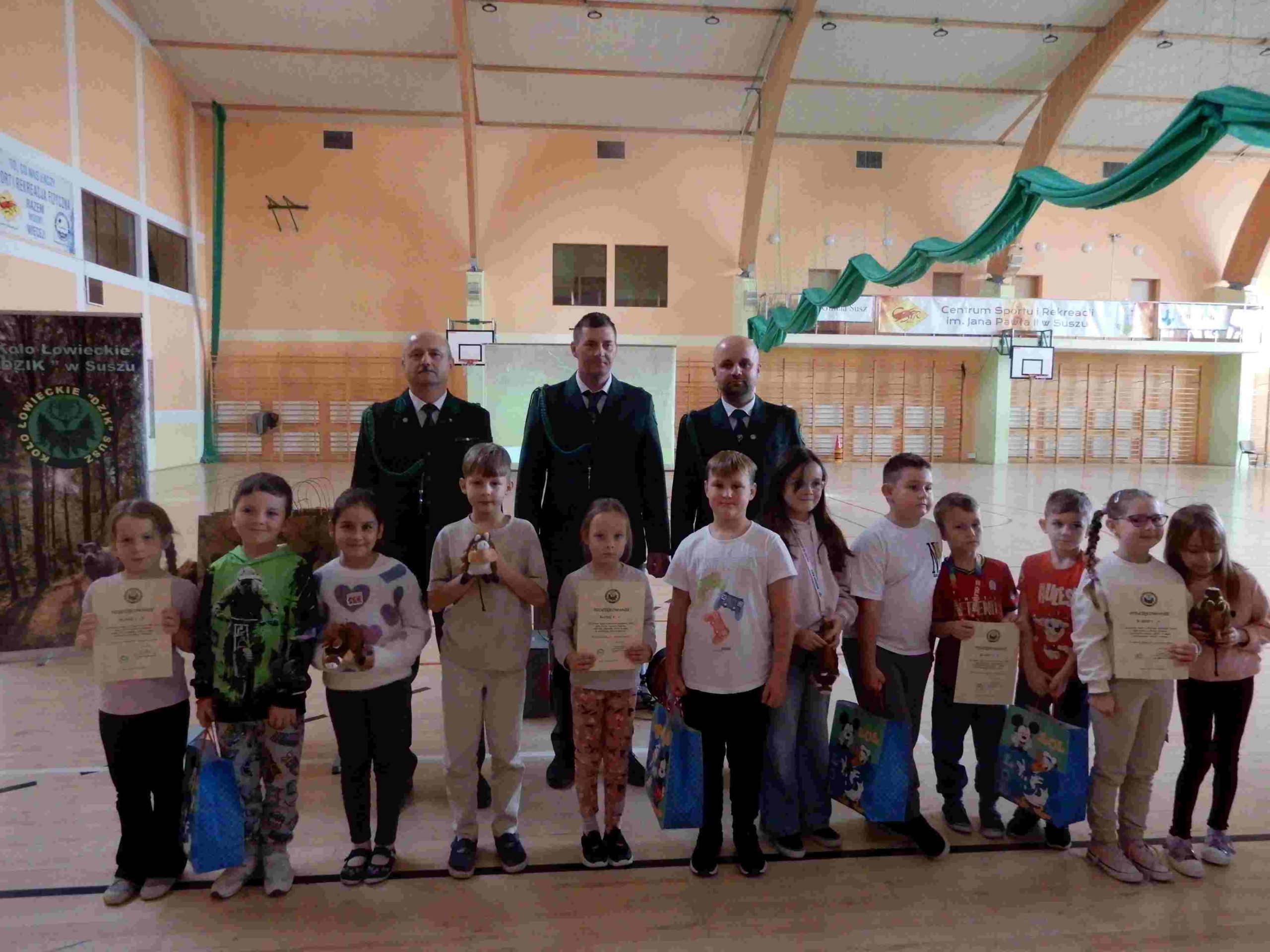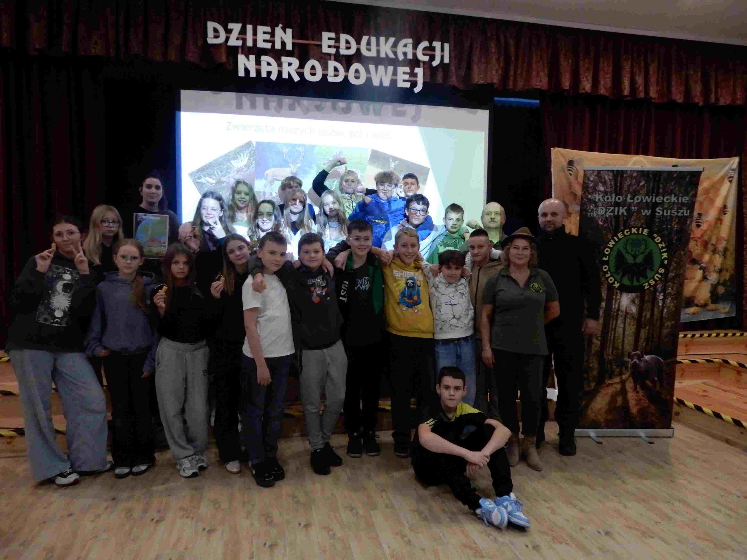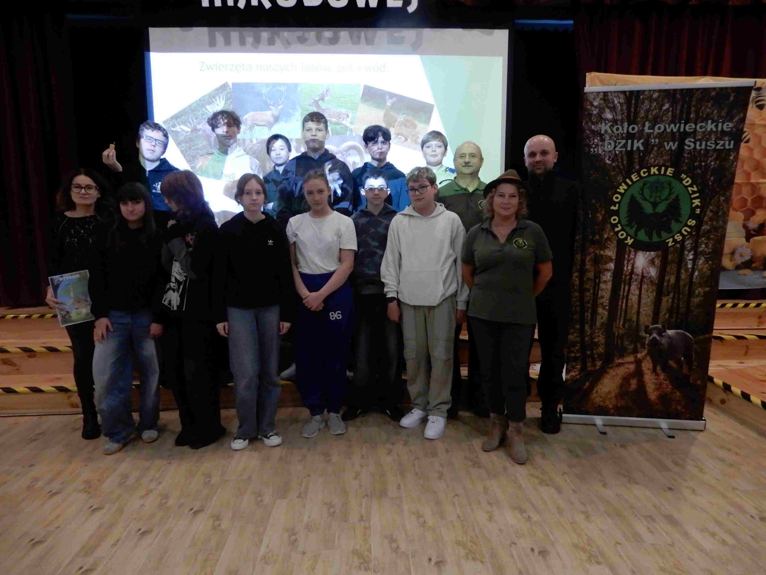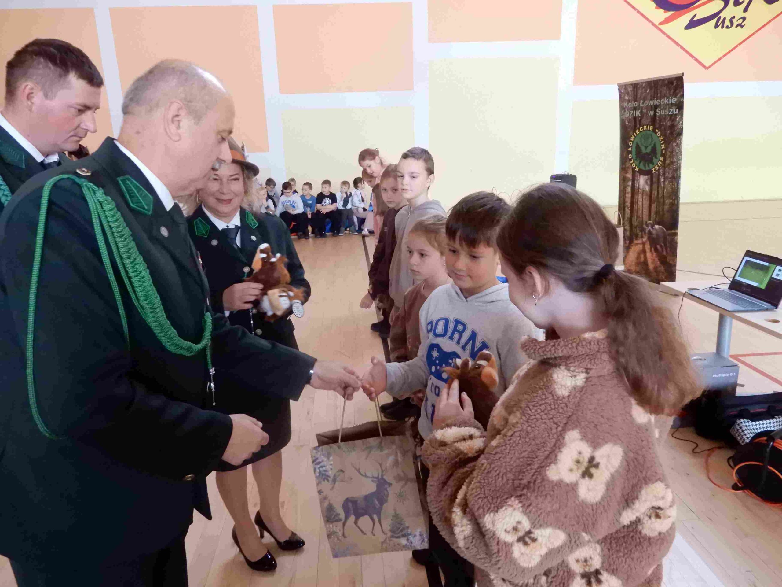 W dniu 05.11.2025 r. reprezentując Koło Łowieckie „Dzik” w Suszu wzięliśmy udział w podsumowaniu III edycji zbierania kasztanów przez uczniów klas I – III Szkoły Podstawowej w Suszu. W podziękowaniu za zebranie 1.100 kg kasztanów wzięli udział: inicjator tego przedsięwzięcia i prowadzący zbiórkę kol. Zbigniew Kołodziejski oraz kol. Dorota Kisieliczyn, kol. Michał Kaczyński, podłowczy koła kol. Rafał Chuderewicz. Spotkanie rozpoczęła Zastępczyni Dyrektora SP w Suszu Pani Mariola Kołodziejska dziękując za kontynuowanie tak cennej inicjatywy oraz dzieciom za ich aktywny udział w zbiórce. Następnie kol. Zbigniew Kołodziejski w imieniu zarządu koła podziękował za zebranie tak dużej ilości kasztanów. Na pytanie, czy dzieci wezmą udział w zbiórce w przyszłym roku, usłyszał gromkie TAK. Ponadto przedstawiono krótką prezentację z filmami ukazującymi zwierzynę płową ze szczególnym uwzględnieniem danieli dla których zbierano kasztany. Na zakończenie spotkania wręczono przedstawicielom klas pamiątkowe podziękowania, słodycze oraz maskotkę dzika symbolizującego nazwę naszego koła.